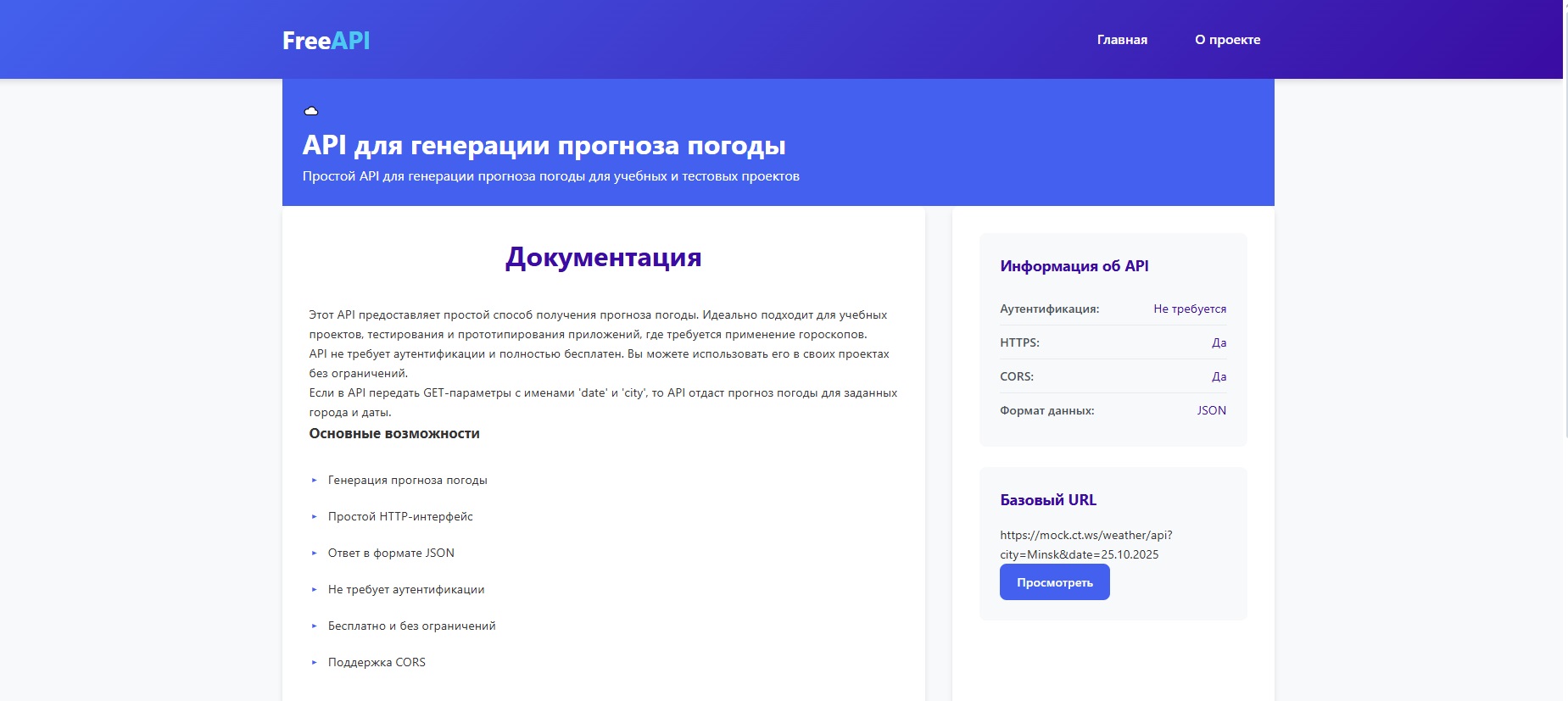 Сервис бесплатных API для начинающих разработчиков